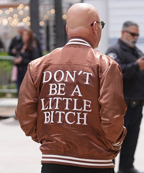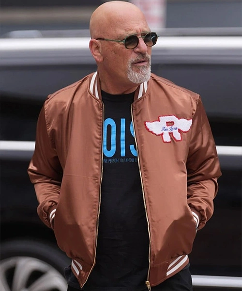 With the Americas Got Talent Howie Mandel Jacket, a sophisticated interpretation of the traditional varsity form, you will take front stage. Designed from premium satin fabric in a warm brown color, this jacket blends the appeal of a letterman with the refined elegance of a top TV personality. Whether you’re roaming the judges’ table or mixing behind the scenes, its smooth surface shines under stage lights and the custom fit guarantees a pleasing cut that flows naturally.