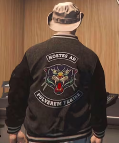 See the GTA 6 Varsity Jacket! This beautiful jacket is perfect for the fans who want to show their love for the game. It was inspired by the edgy atmosphere of the game, to make you feel fashionable and related to the game at the same time. With its black sleeves and traditional grey tone, the jacket has a sleek and contemporary appearance.