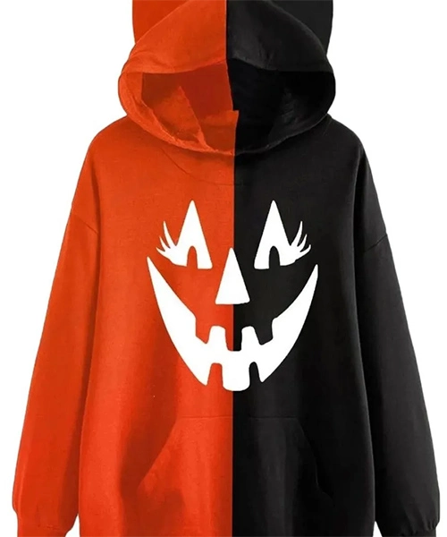 Perfect for the season’s celebrations, trick-or-treating, or just sitting around in the fall, the audacious mix of orange and black gives it a fun yet eerie air. This item will surely make you stand out whether your taste in Halloween is strong or you simply enjoy a distinctive sweatshirt.