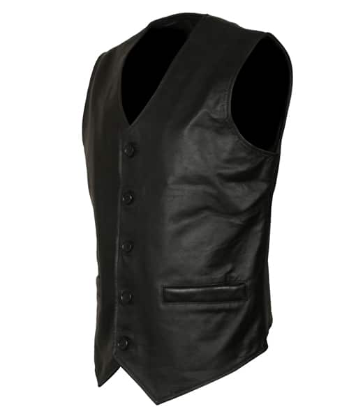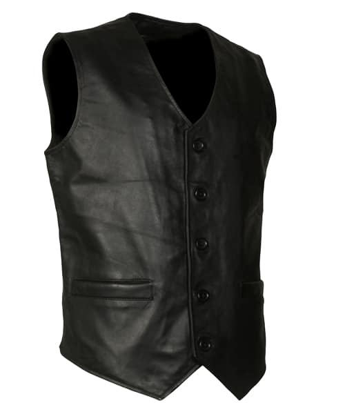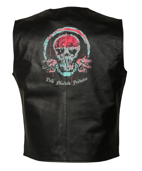 Mens Motorcycle Black Leather Vest Skull Printed Halloween Vest