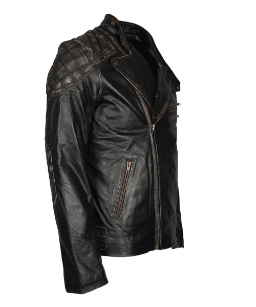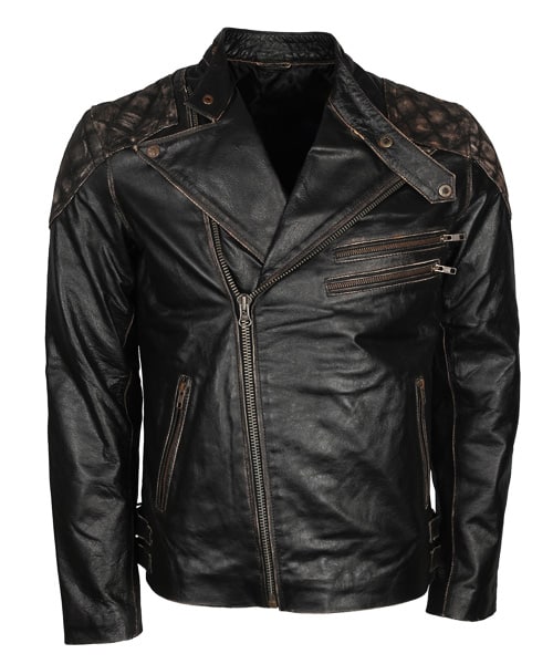 • Distressed Black Color: The jacket comes in a stylish distressed vintage black color that not only complements your style but also gives it a timeless, rugged appearance.
