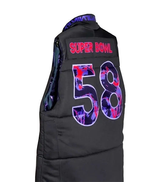 The Super Bowl black puffer vest is the perfect addition to any wardrobe, whether you are dressing for game day festivities or just adding some sports flair into your regular outfit. This famous design honors the excitement of the Super Bowl and the thrill of football, will up your style ante and show off your team pride. With this essential vest that captures the essence of the game, you may support the winning team in style and utility.