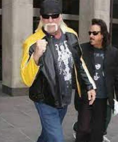 WWE Hulkamania Hulk Hogan is a wrestling legend, known for his charismatic personality and iconic yellow and black attire. His larger-than-life presence in the ring made him one of the most recognizable figures in the history of professional wrestling. Step into the world of WWE with the WWE Hulkamania Hulk Hogan Black Leather Jacket.