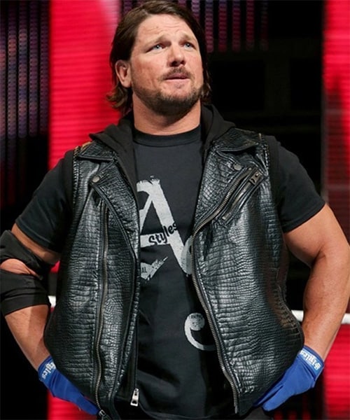 The AJ Styles Leather Vest is not just a piece of clothing; it’s a statement. It represents strength, ambition, and the unyielding determination that AJ Styles is known for. Crafted in a bold black design, this vest commands attention and respect. It mirrors the fearless spirit of AJ Styles, making it perfect for those who want to channel their inner champion.