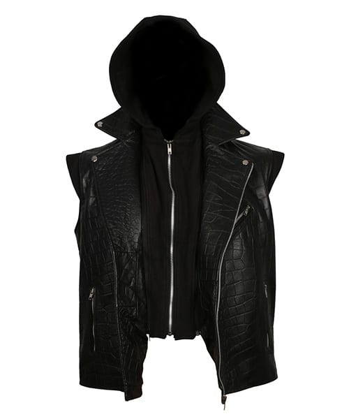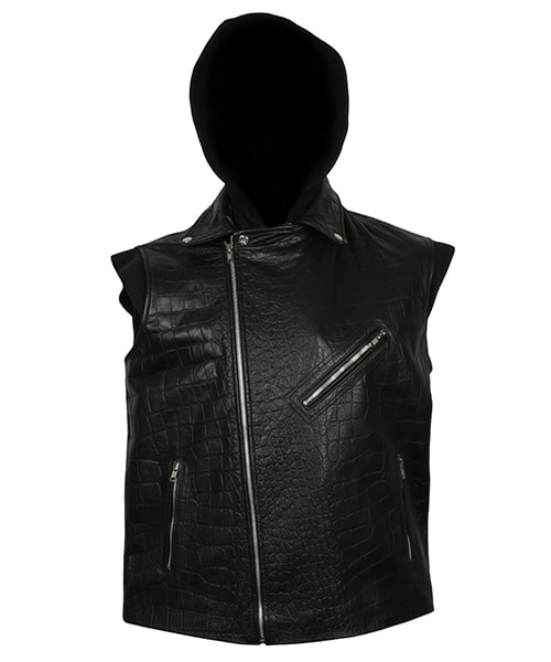 WWE TNA AJ Styles Detachable Hooded Black Leather Vest